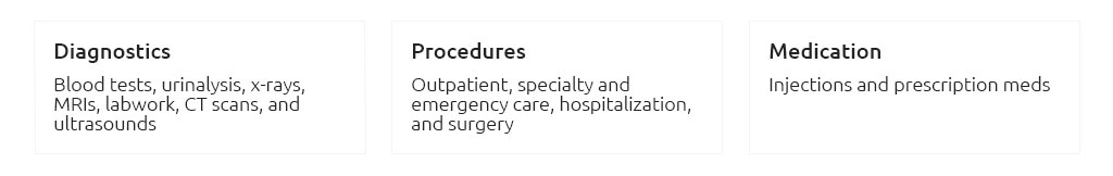 - Rehab/alternative care: often as an add-on (PT, acupuncture, chiropractic).
